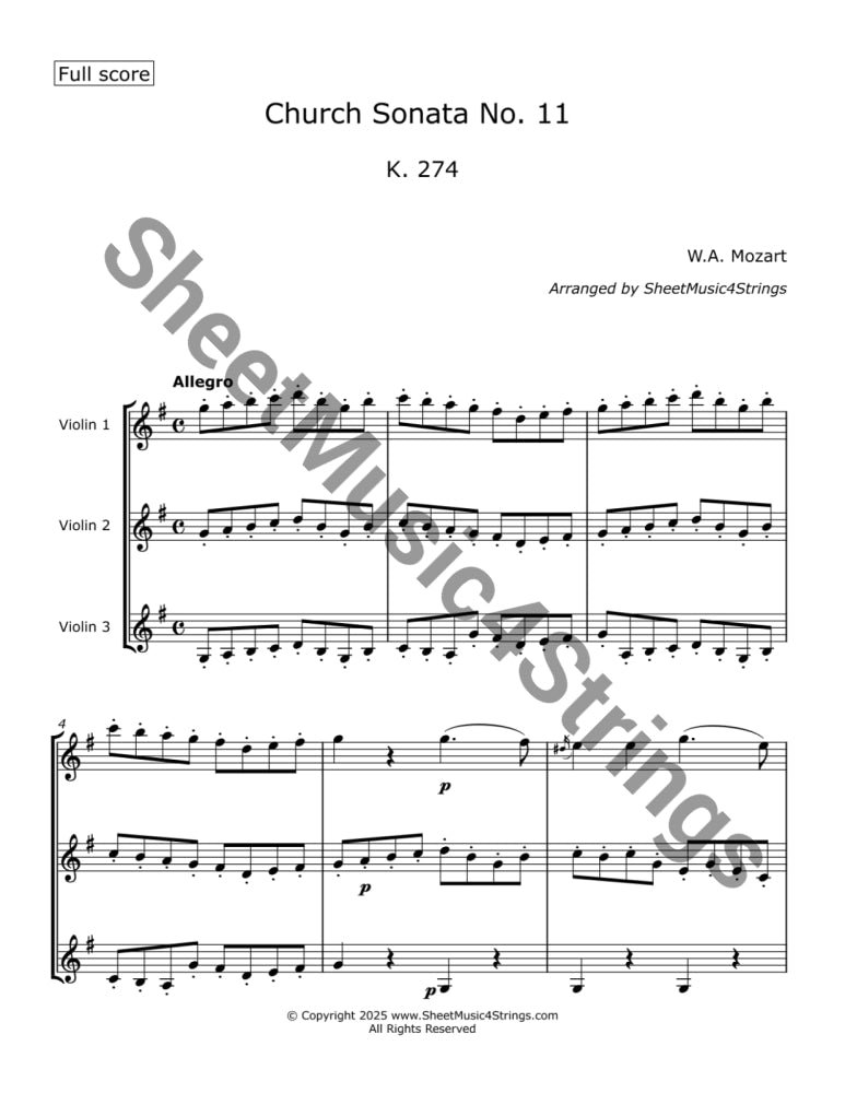 This trio for three violins was originally written for two violins, bass and organ. This sonata is a brief, elegant chamber work composed around late 1766 or early 1767 in Salzburg. The piece reflects the Galant style of the mid-18th century—graceful, light, and focused on clear melodies. Because of the strict time limits imposed by Archbishop Colloredo (who required the entire Mass to last no more than 45 minutes), the sonata is quite concise, typically lasting under 4 minutes.